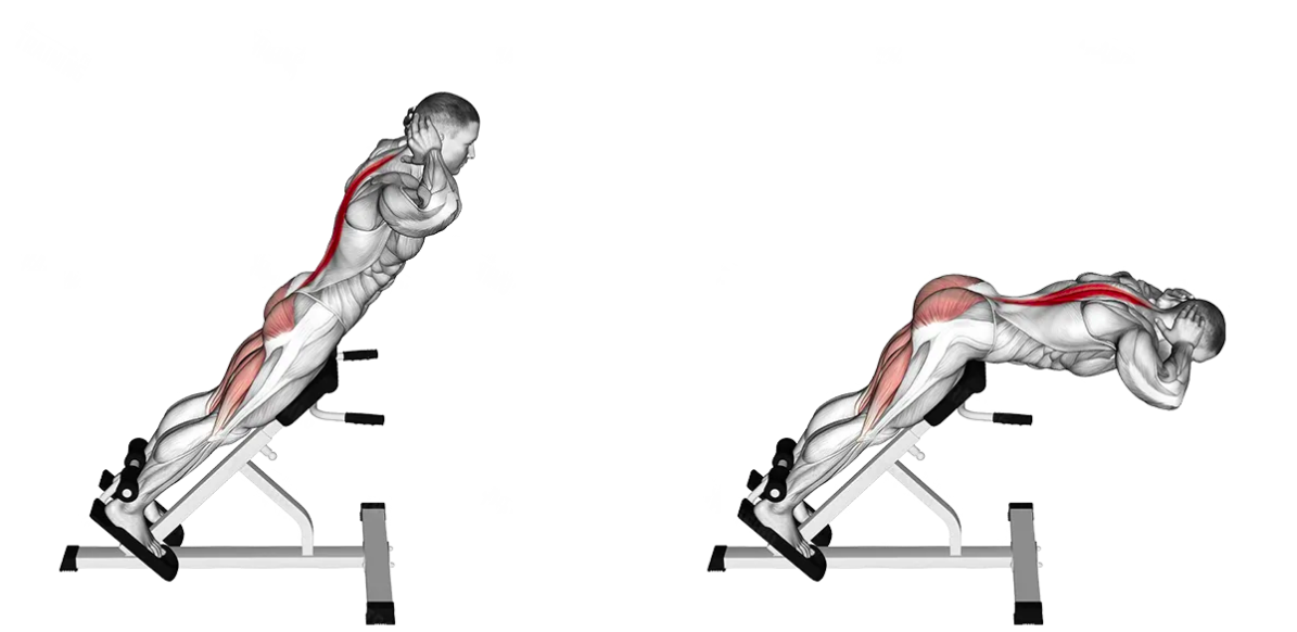 Hyperextension, also known as back extension, is a resistance training exercise that targets the muscles in your lower back and glutes. The exercise involves lying face down on a hyperextension bench with your feet secured and slowly raising your torso until it's parallel to the ground.